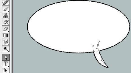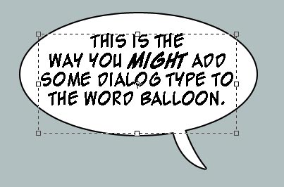 Adding type just involves using Photoshop's type tool. Drag out a rectangular shape with the tool just larger than your ellipse. Type in your dialog, being sure to space the type so that short lines are at the top and bottom of the ellipse shape. Tweak the shape of the balloon, move the point of the tail, and bold the words that you want to emphasize. Go crazy! You can reshape and resize the balloon and type to your heart's content.