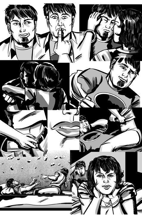Now, take a look at the inks... see how they're drawn "wider" than the panels they'll eventually fit into? How they're overlapping each other? I did this deliberately, since I'll eventually crop the panels in Photoshop, and this will give me some flexibility regarding panel size and positioning. I don't worry about the overlap since each panel is drawn in Manga Studio. as a separate layer, which I'll bring directly into a Photoshop composition.