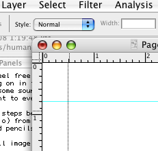 My next step is to lay out the panel area. I usually start by pulling "guides" from the rulers on the top and side of the document (use menu item-> View:Ruler if they're hidden), using the distances I explained above. Then I make a new layer (using the "layer" palette), name it something logical like "Panels", and then drag a selection rectangle (Marquee Tool) in the shape defined by the guides, and fill this area with white.